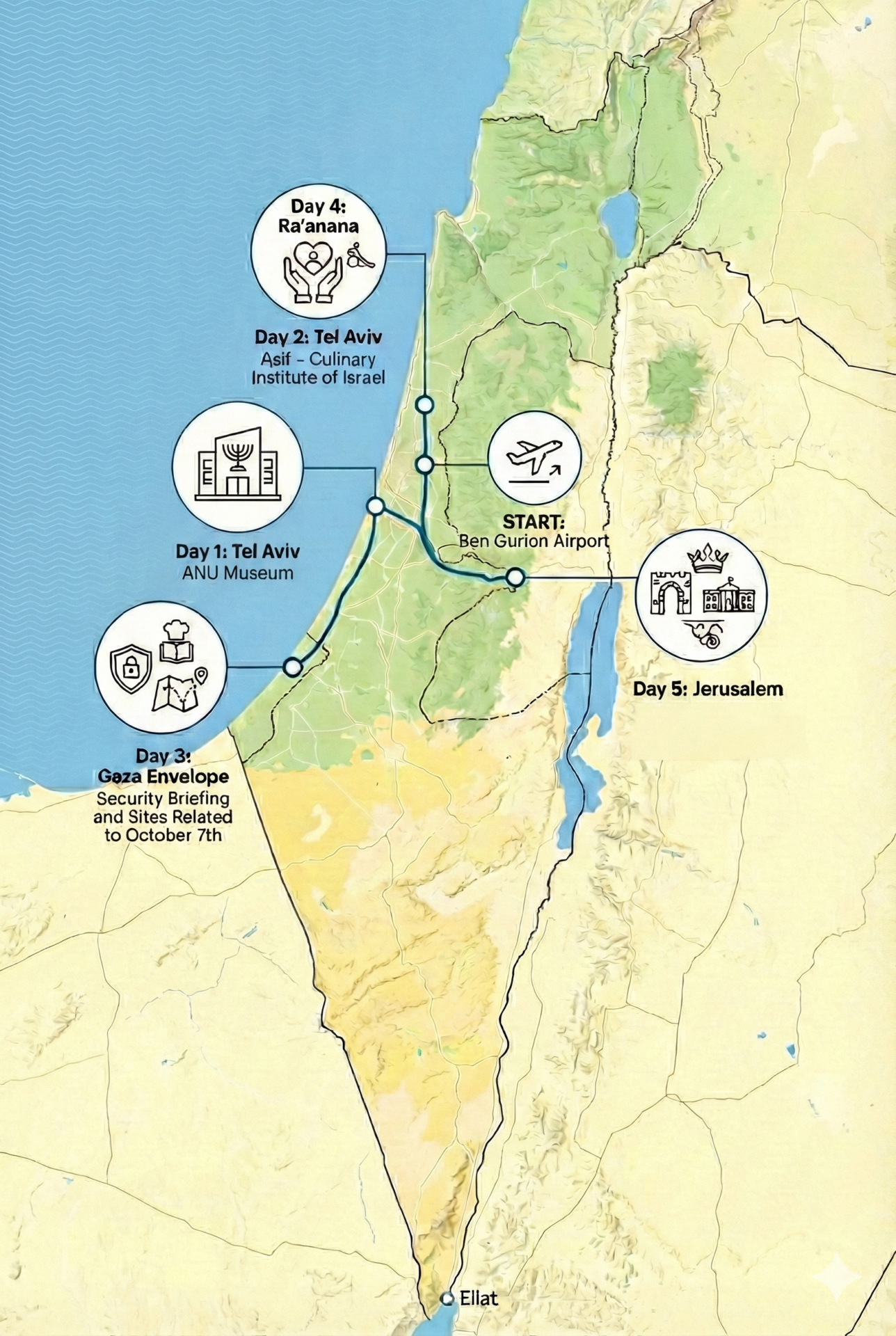 This mission is about connection — to the land, to its people, and to the impact you make possible. Along the way, you’ll discover how Israel’s spirit of resilience, creativity, and compassion shines through its people, culture, and innovation.