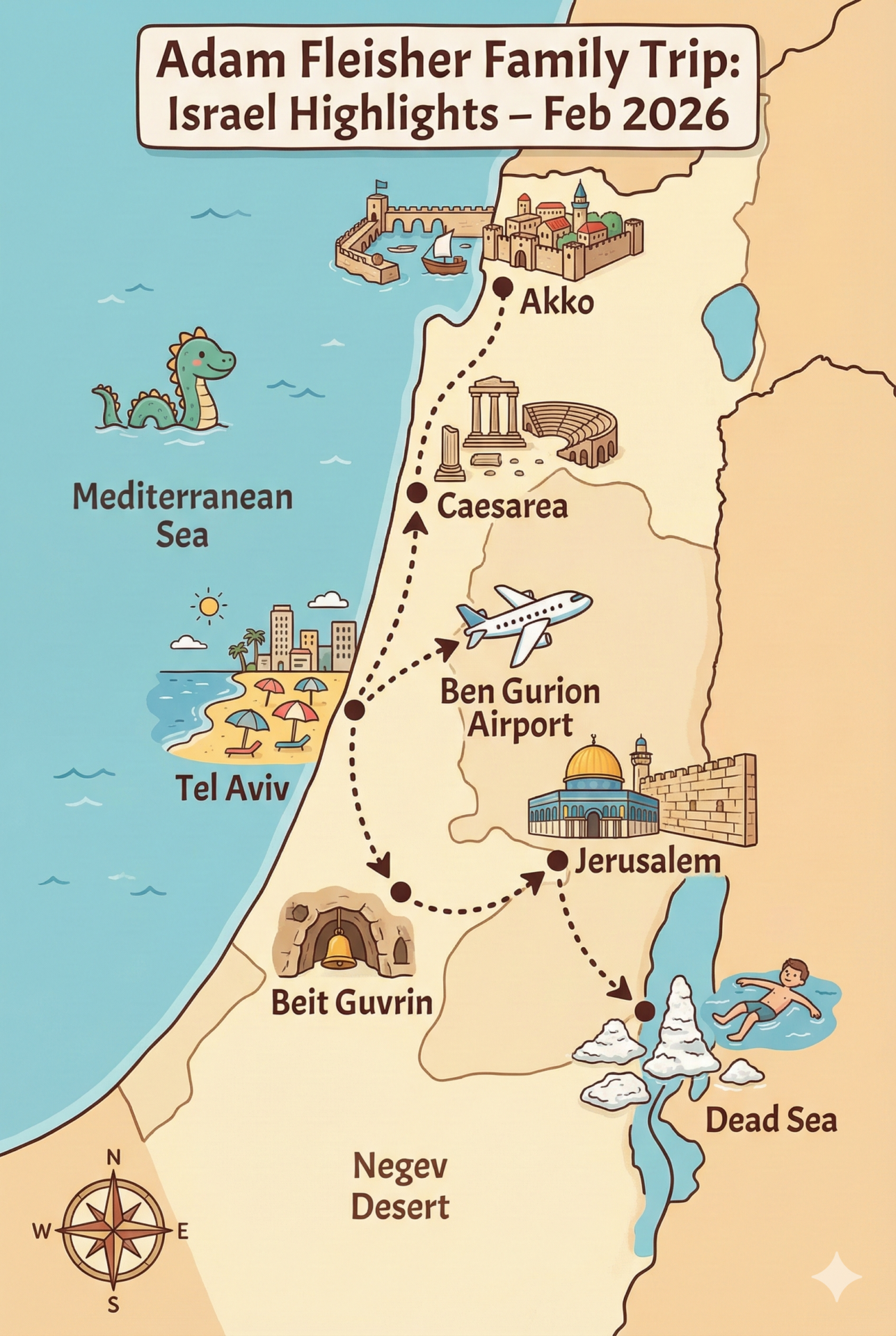 Parsons family, get ready for your ultimate Israeli adventure! You’ll be digging for ancient treasures at Beit Guvrin, exploring Crusader tunnels in Akko, and floating effortlessly in the Dead Sea. From bustling Tel Aviv to historic Jerusalem, this action-packed trip is custom-designed just for you!